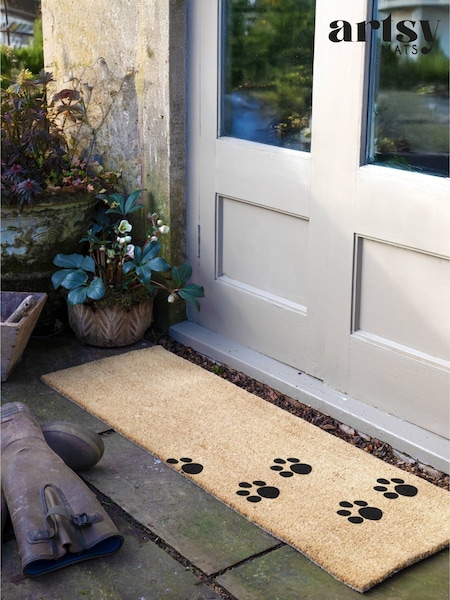 Artsy Mats Natural Black Paw Prints Patio Doormat