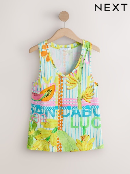 Fruit Print Raw Seam Detail Thick Strap Vest