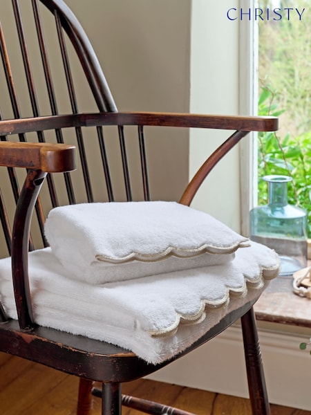 Christy Gold Scallop Edge Embroidered Cotton Towel