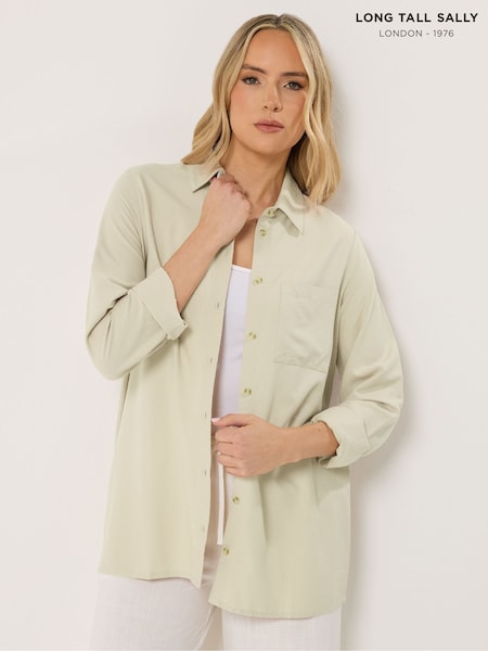 Mango Nude Oversized V-Neck Collared Long Sleeve Shirt