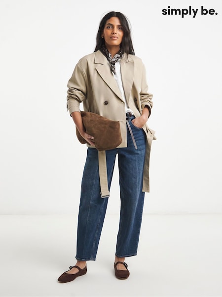 Simply Be Natural Chocolate Blouson Sleeve Trench Jacket