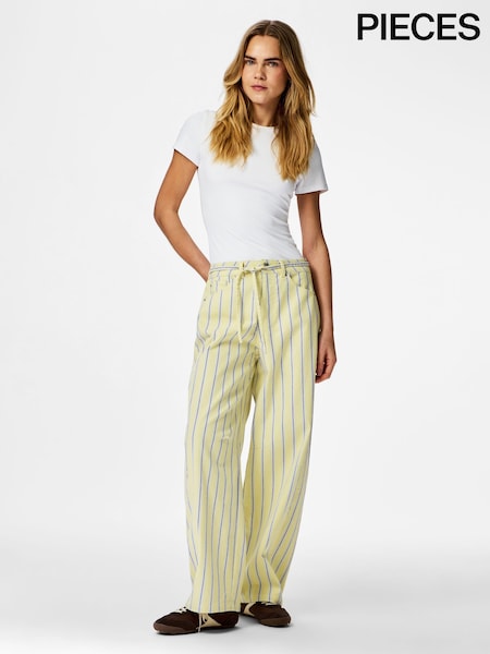 PIECES Yellow Mid Waist Tie Barrel Jeans