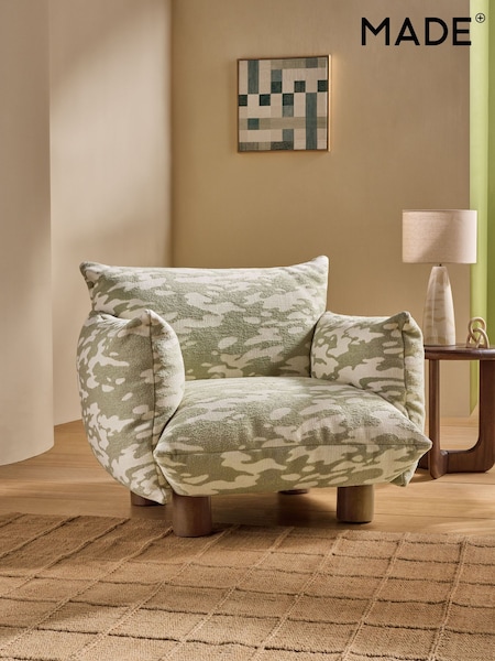 MADE.COM Embossed Chenille Natural and Sage Green Jude Accent Chair