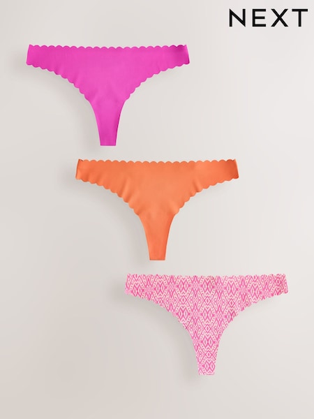 Pink/Orange Thong No VPL Scallop Knickers 3 Pack