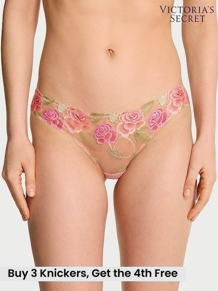 Victoria's Secret Hearts and Roses Pink Brazilian Embroided Knickers