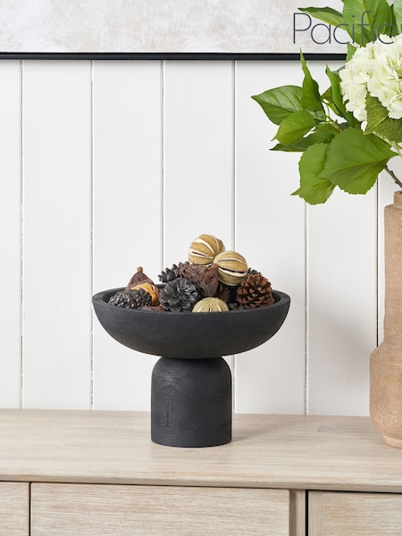 Pacific Black Handcarved Mango Wood Bowl with Raised Base