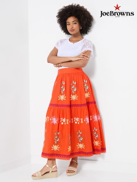 Joe Browns Orange Remarkable Embroidered Maxi Skirt
