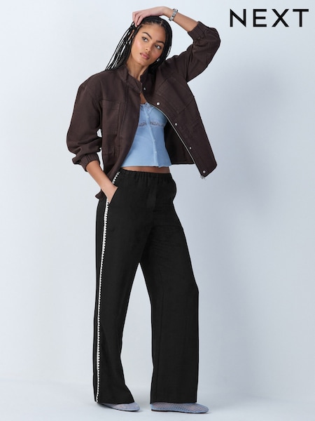 Black Embroidered Side Detail Wide Leg Trousers