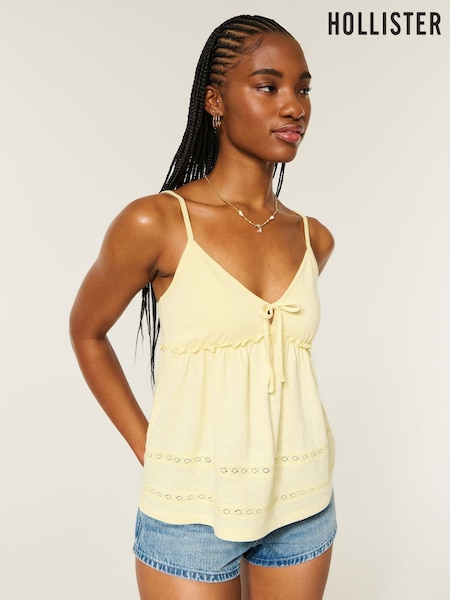 Monsoon Yellow Willow Puff Sleeve Tie Front Top