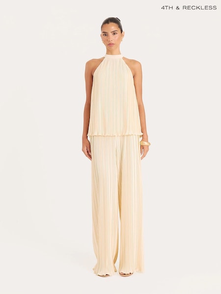 4th & Reckless Yellow Plisse Wide Leg Trousers