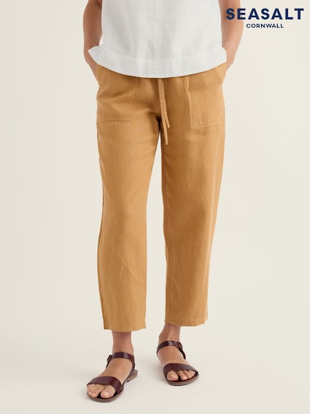 Mint Velvet Yellow Linen Drawstring Wide Leg Trousers