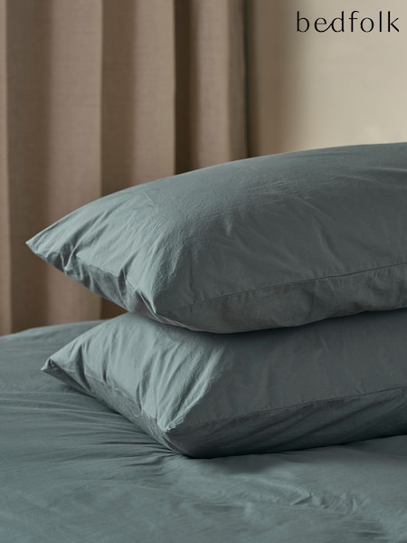 Bedfolk Teal Blue Relaxed Cotton Pillowcases Pair