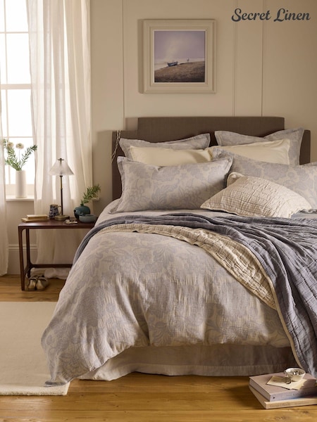 Secret Linen Store French Blue Matilda Cotton Jacquard Pillowcase