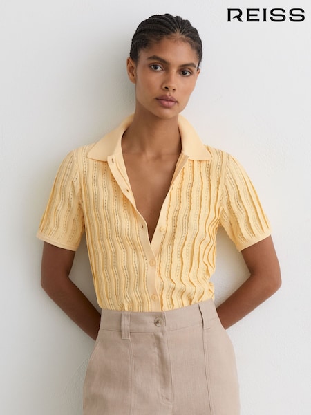 Reiss Navy Harri Button-Through Knitted Top with Collar