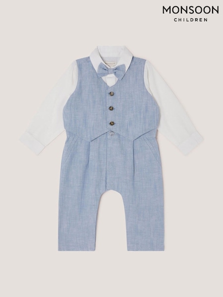 Monsoon Blue Newborn Arlo Waistcoat Romper