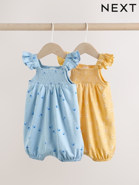 Yellow and Blue Floral Smocked Baby Rompers 2 Pack