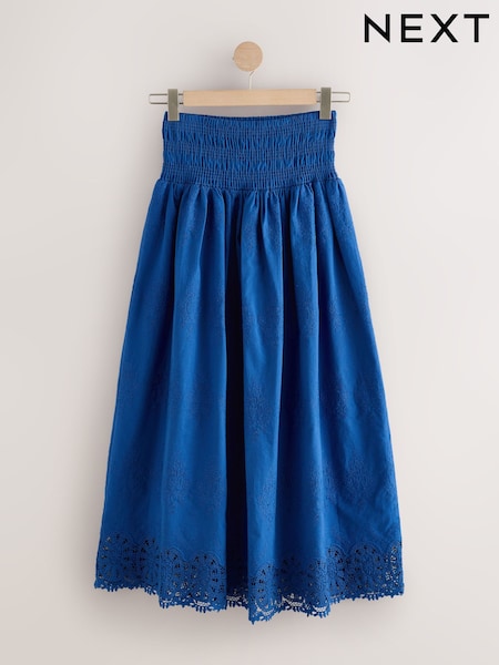 Blue Crochet Trim Maxi Skirt