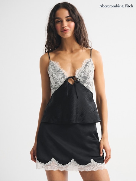 Abercrombie & Fitch Black Satin and Lace High Rise Mini Skirt