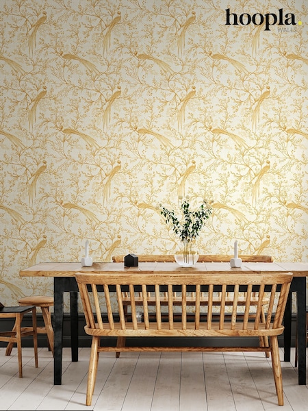Laura Ashley Bernwood Ochre Yellow 10M Wallpaper Wallpaper