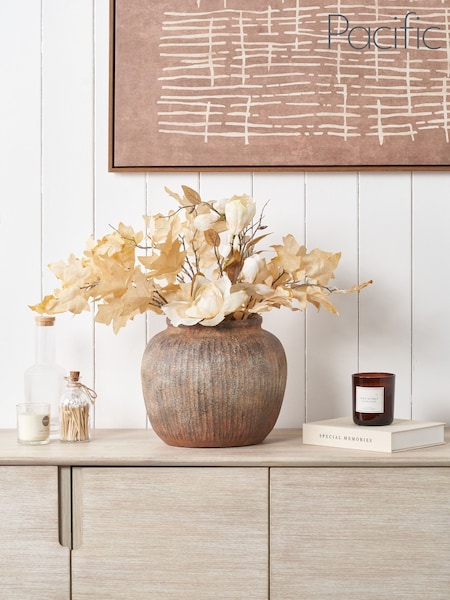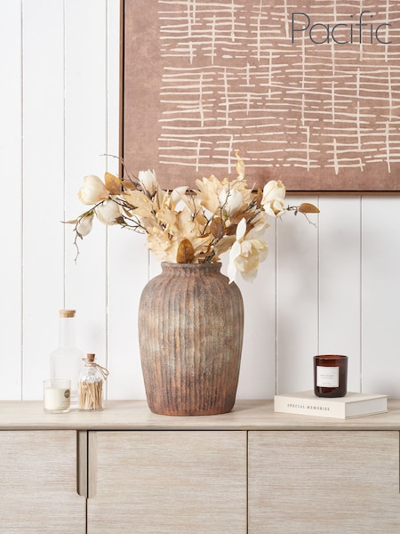 Pacific Brown Fibrestone Vertical Ribbed Decorative Vase