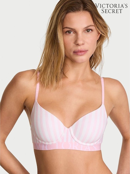 Victoria's Secret Pretty Blossom Pink Stripes Lightly Lined Demi Cotton Exploded Logo Bra