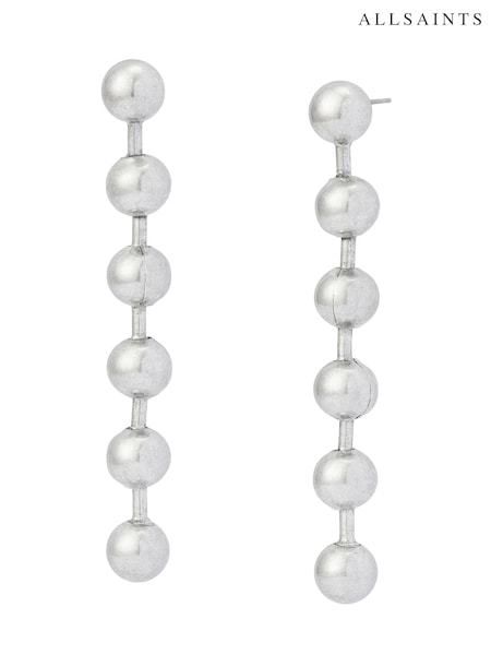 AllSaints Silver Tone Ball Chain Linear Statement Earrings