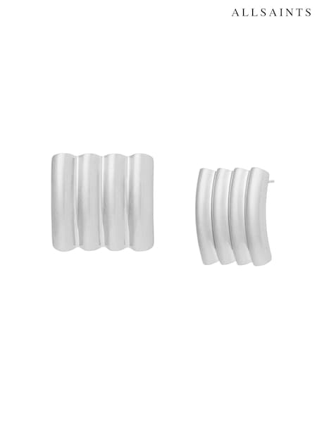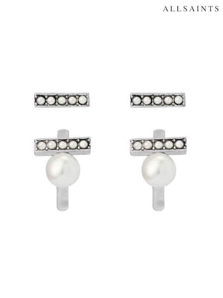 AllSaints Silver Tone Nellie Pearl Bar Huggie Earrings Set
