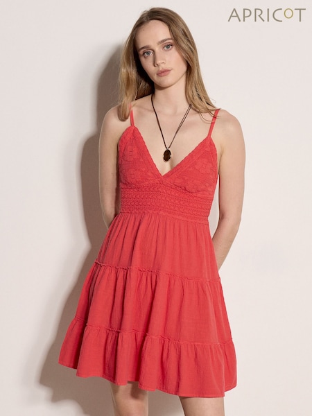 Apricot Natural Crochet Bodice Tiered Mini Dress