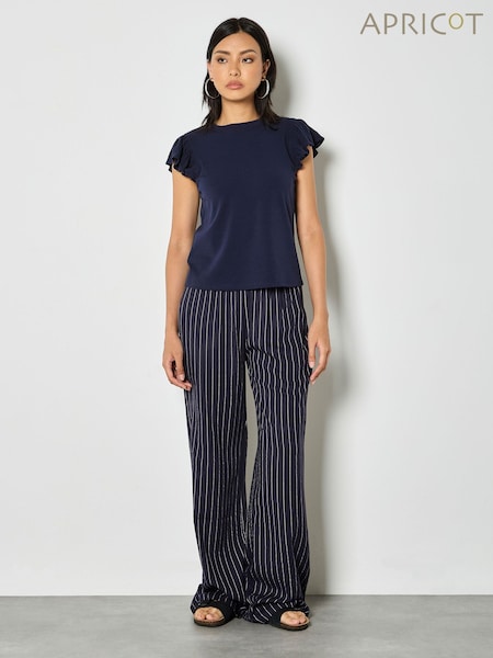 Apricot Blue Pinstripe Linen Blend Wide-Leg Trousers