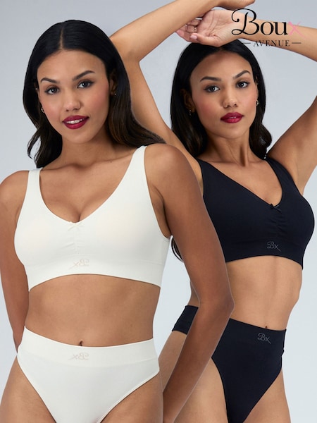 Boux Avenue Black/Cream 2 Pack Rib Ruche Bralette