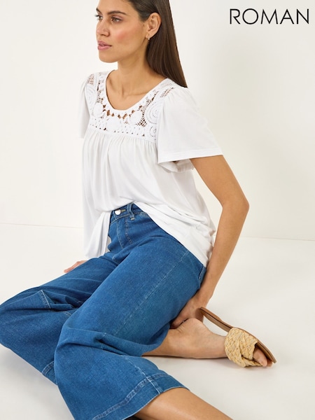 Roman White Crochet Panel Stretch Top