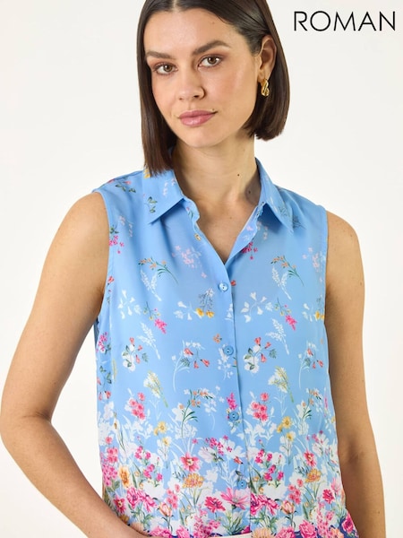 Roman Blue Floral Border Blouse