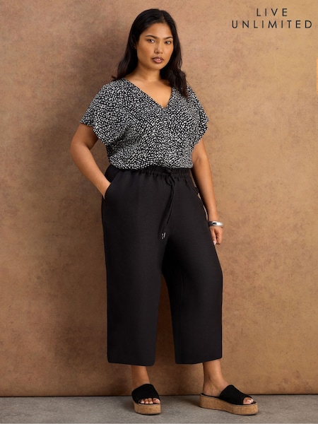 Live Unlimited Black Linen Blend Drawstring Cropped Trousers
