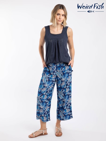 Weird Fish Blue Sarita Crinkle Printed Wide Leg Cropped Trousers