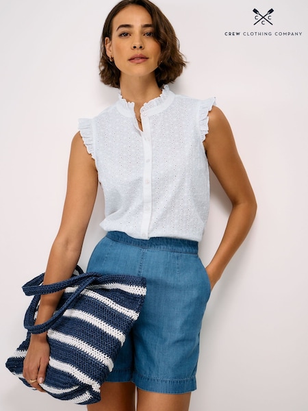 Crew Clothing White Neve Cotton Broderie Anglaise Blouse