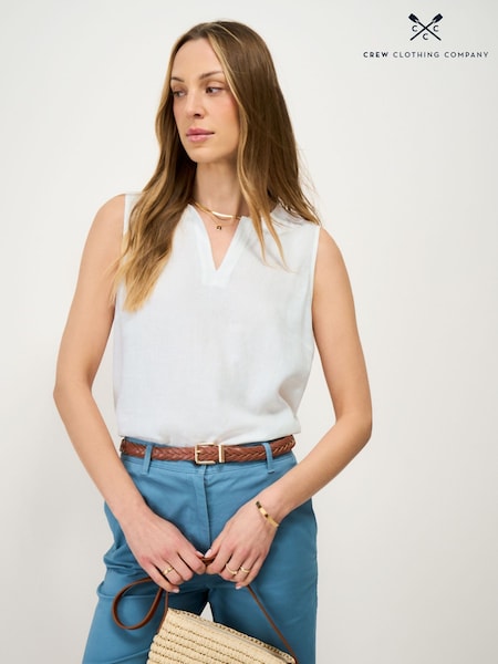 Crew Clothing White Shelley Linen-Blend Shell Top