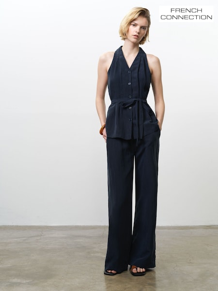 French Connection Blue Melina Halterneck Top