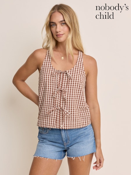 Nobodys Child Brown Thea Scoop Neck Tie Front Blouse