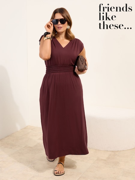 Friends Like These Chocolate Brown Curve V-Neck Shirred Waist Jersey Maxi Dress