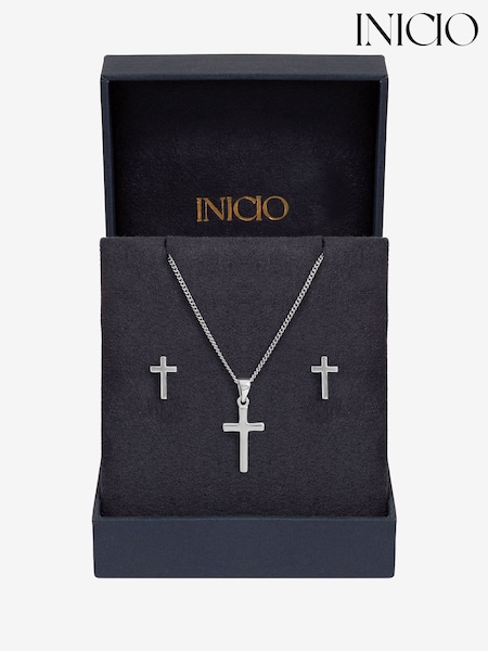 Inicio Sterling Silver Plated Polished Cross Set Gift Box