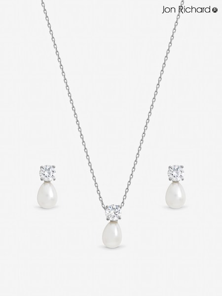Jon Richard Silver Tone Crystal and Pearl Bridal Set Gift Box