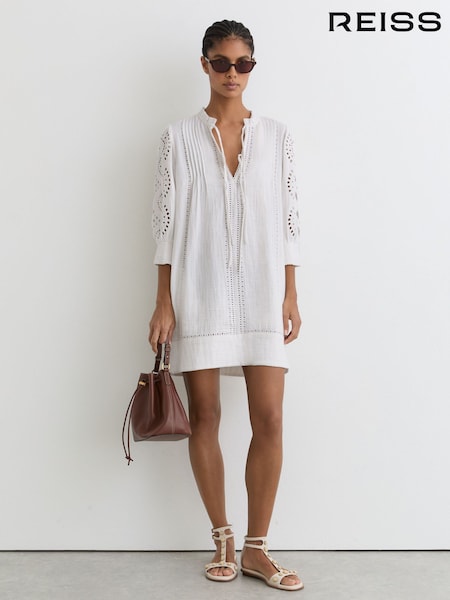 Reiss Ivory Gia Cotton Cheesecloth Broderie Mini Dress