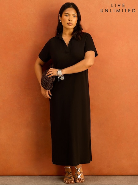 Live Unlimited Black Collar Neck Jersey Midi Dress