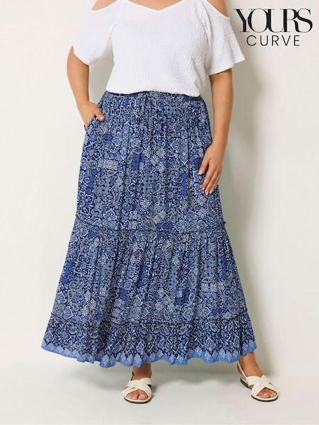 Yours Curve Blue Stripe Poplin Midaxi Skirt