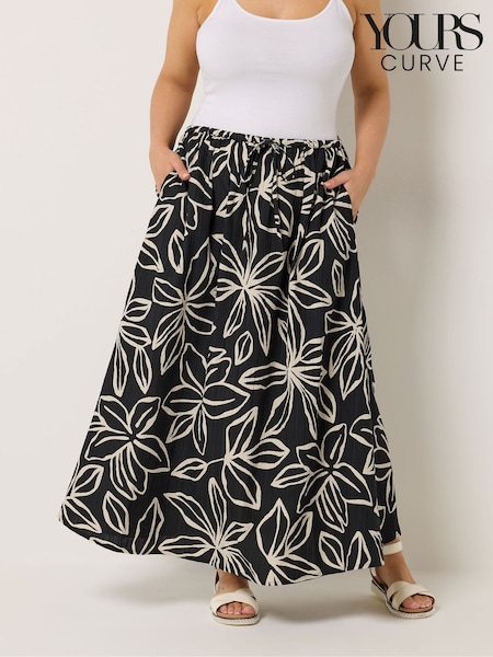 Yours Curve Black Cotton Tiered Maxi Skirt