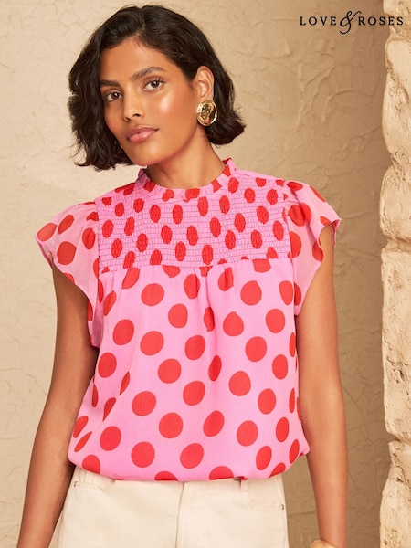 Love & Roses Purple Spot Flutter Sleeve Blouse