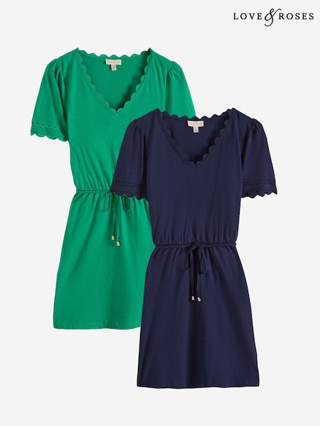Love & Roses X2 Bright Green and Navy V-Neck Scallop Jersey Mini Dress