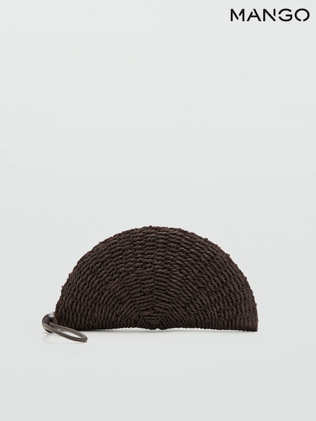 Mango Brown Straw Weave Zip Around Clutch