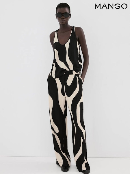 Mango Black Printed Wide Leg Trousers