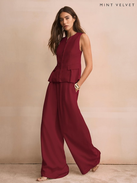 Mint Velvet Red Pleat Detail Wide Leg Trousers